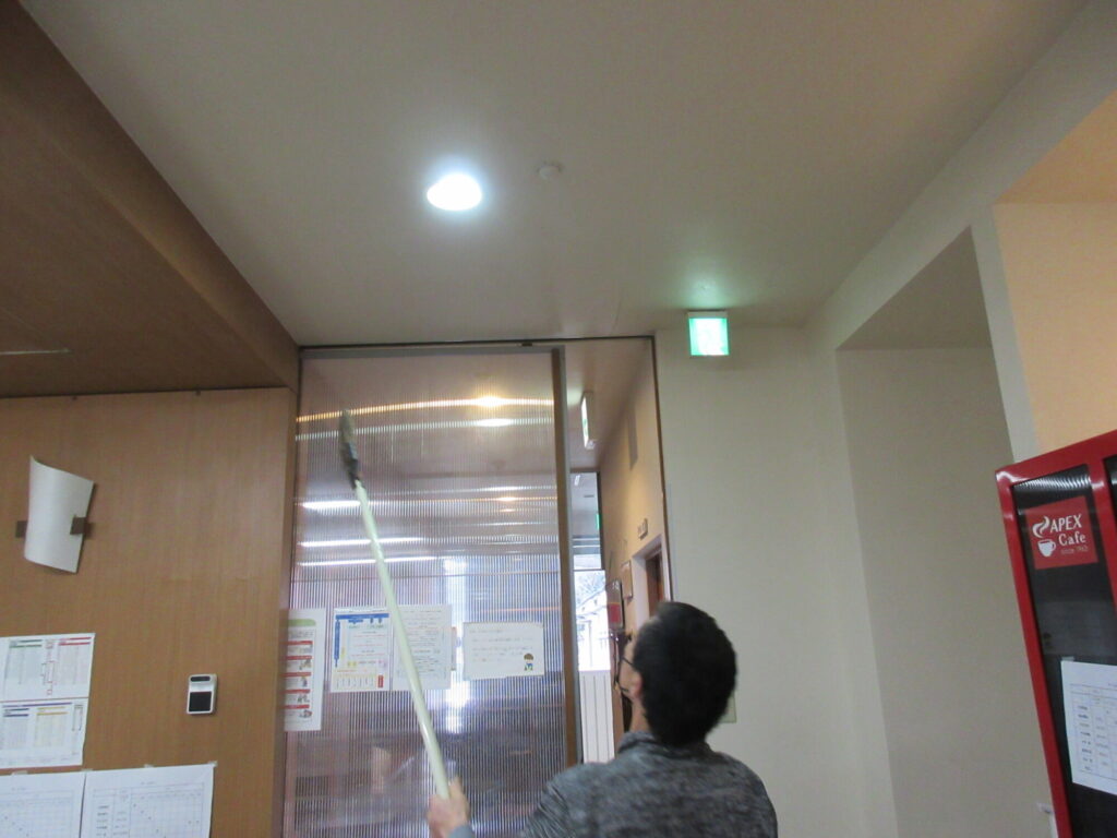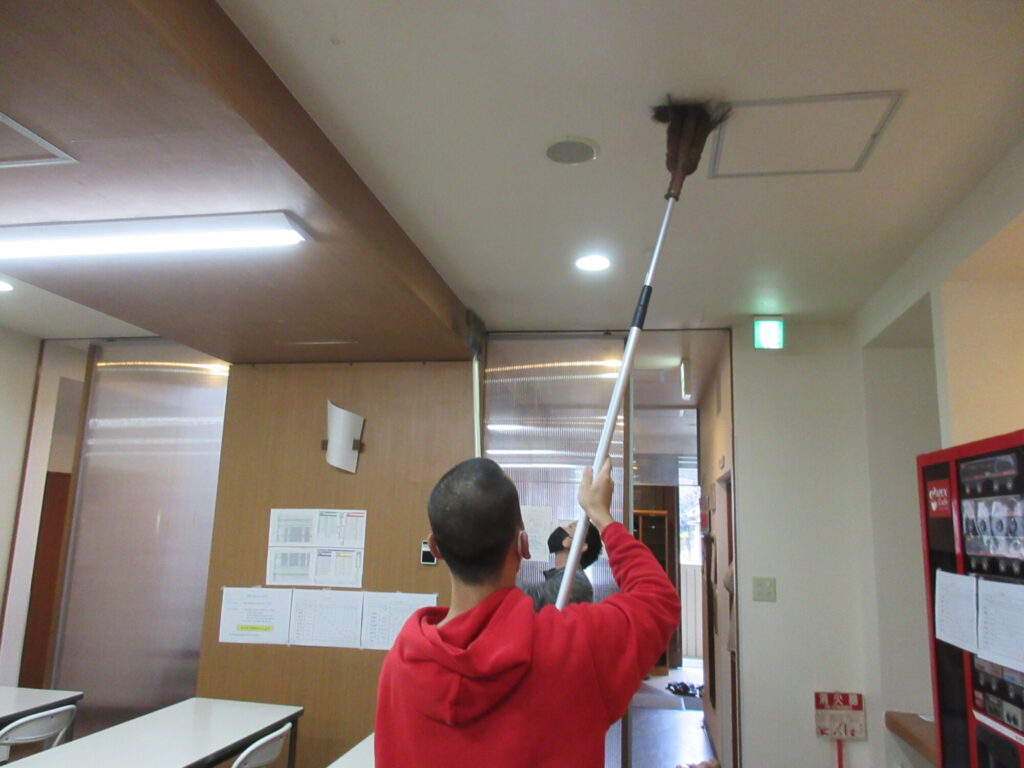 一生懸命天井のホコリを取ってくれました。