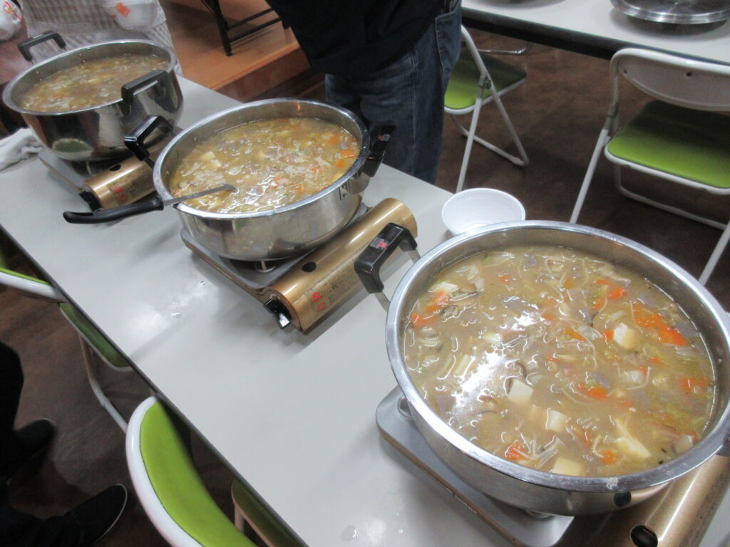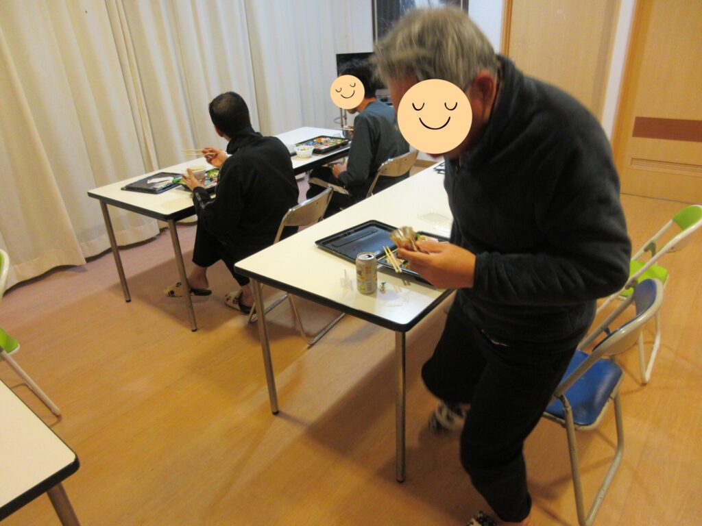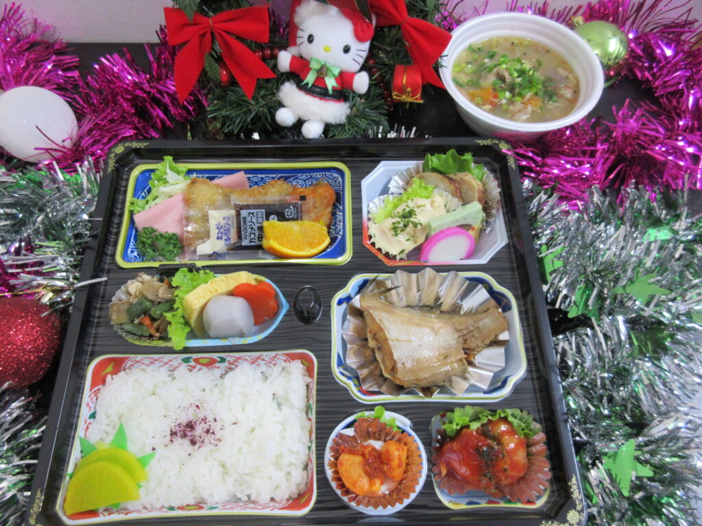 続いてクリスマスイブの日には、いつもと雰囲気を変え美味しいお弁当と職員お手製の豚汁をご用意しました!